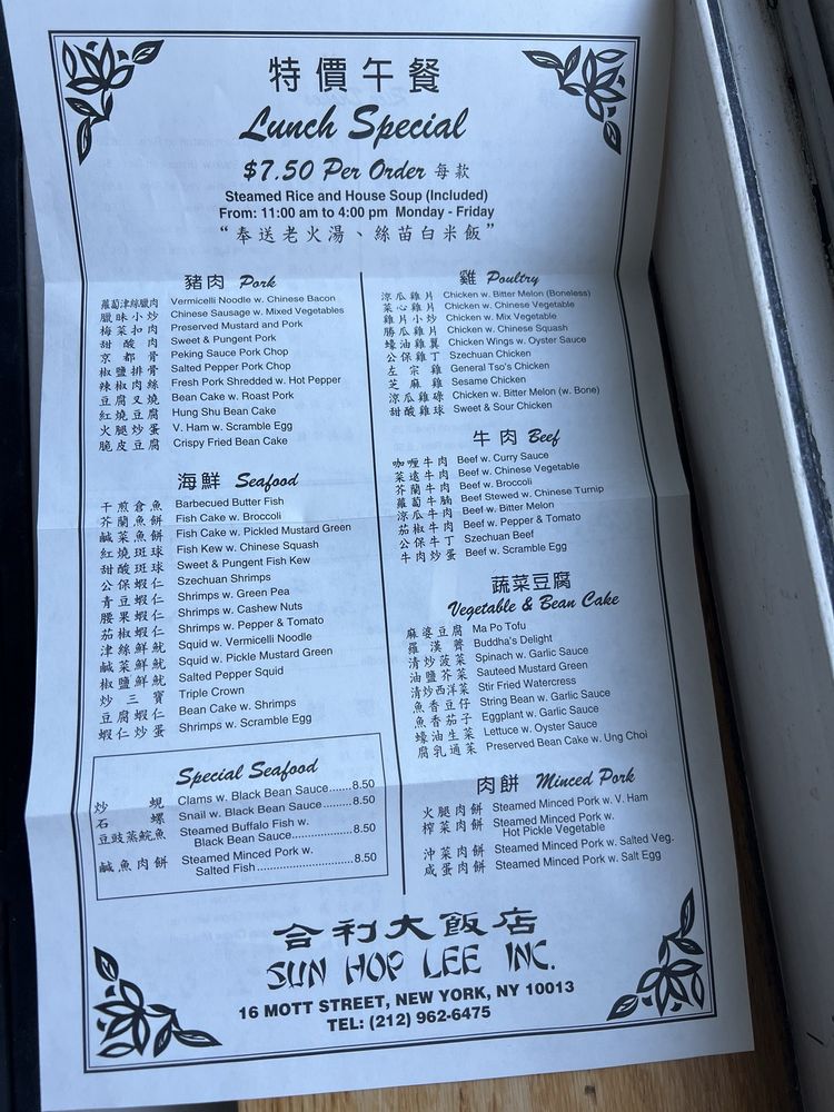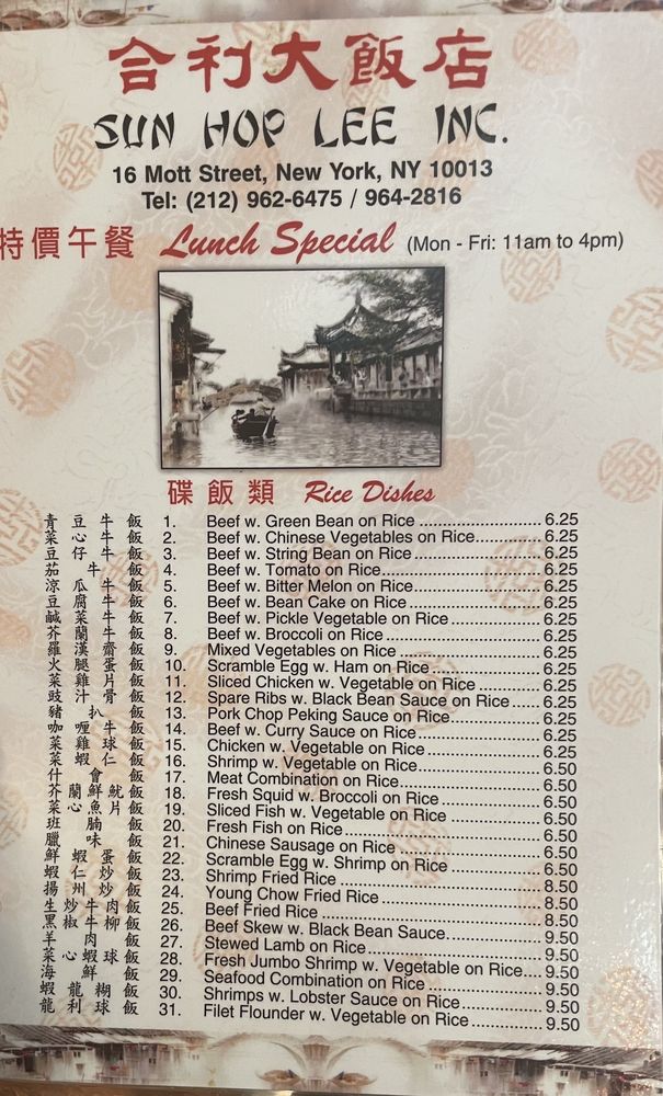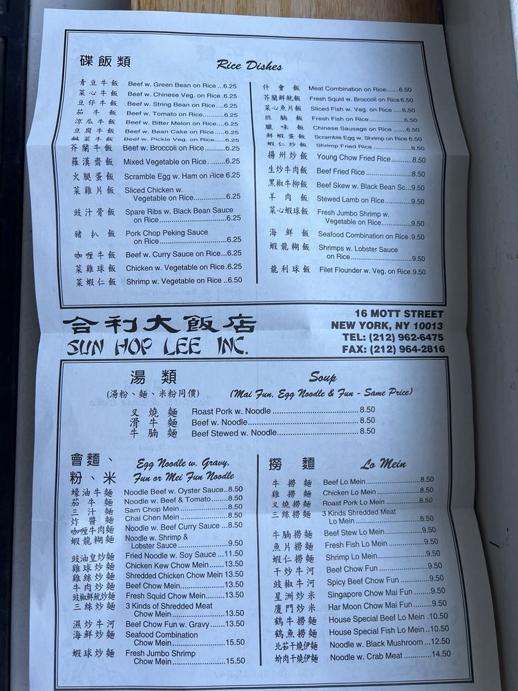 Hop Lee Restaurant, located in New York's Chinatown, offers a wide range of traditional Chinese dishes with a focus on authentic flavors and fresh ingredients. With a casual atmosphere and a variety of options for vegetarians, Hop Lee is perfect for any occasion, whether it's a lunch with friends or a family dinner. The menu features classic appetizers like steamed pork buns and pan-fried dumplings, as well as cold appetizers and hearty soups. Customers rave about the Chinese broccoli sautéed with Chinese sausage and preserved pork belly, as well as the clams in black bean sauce. The restaurant's affordable lunch specials and generous portion sizes make it a must-visit spot for Chinese cuisine lovers. Hop Lee's loyal customer base appreciates the friendly service and the nostalgic, no-frills atmosphere that brings back memories of authentic Cantonese dining.
